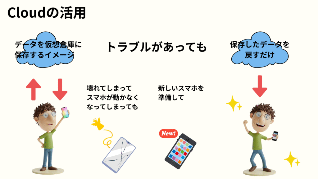 突然スマホが壊れたり、水に落としたりしても外部保存があれば安心。